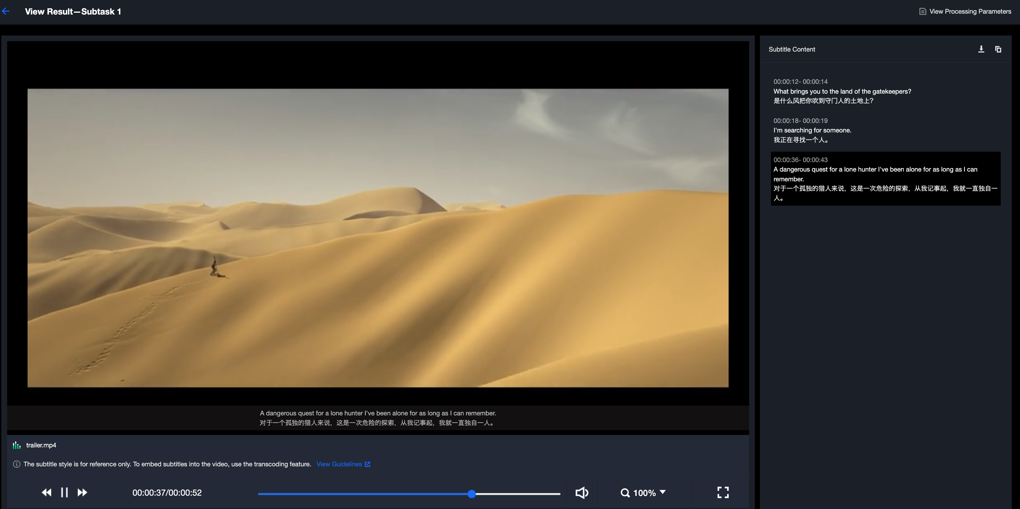 2. When the subtask status is "Successful", clicking on View Result allows for a preview of the subtitle.
