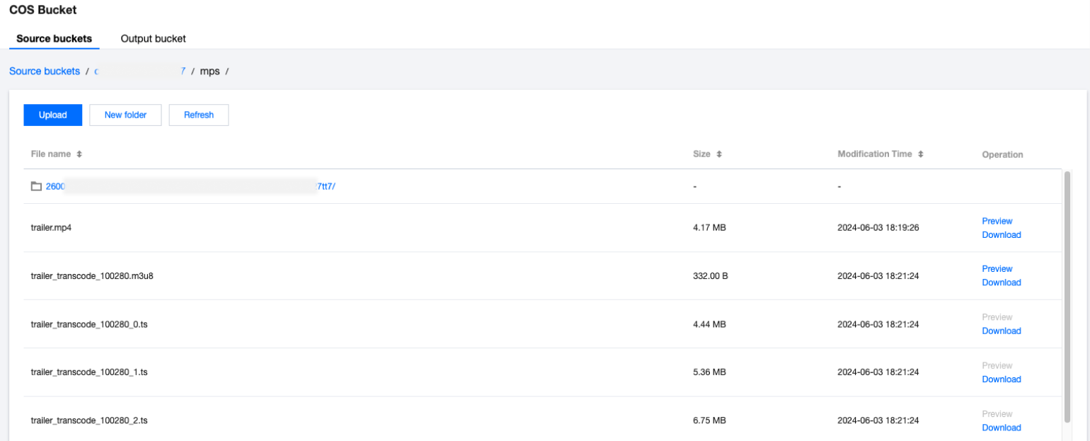 You can find the trigger bucket & output bucket configured for the orchestration in the menu Orchestration > COS Bucket page, to conveniently carry out operations such as file upload, preview, download, etc.