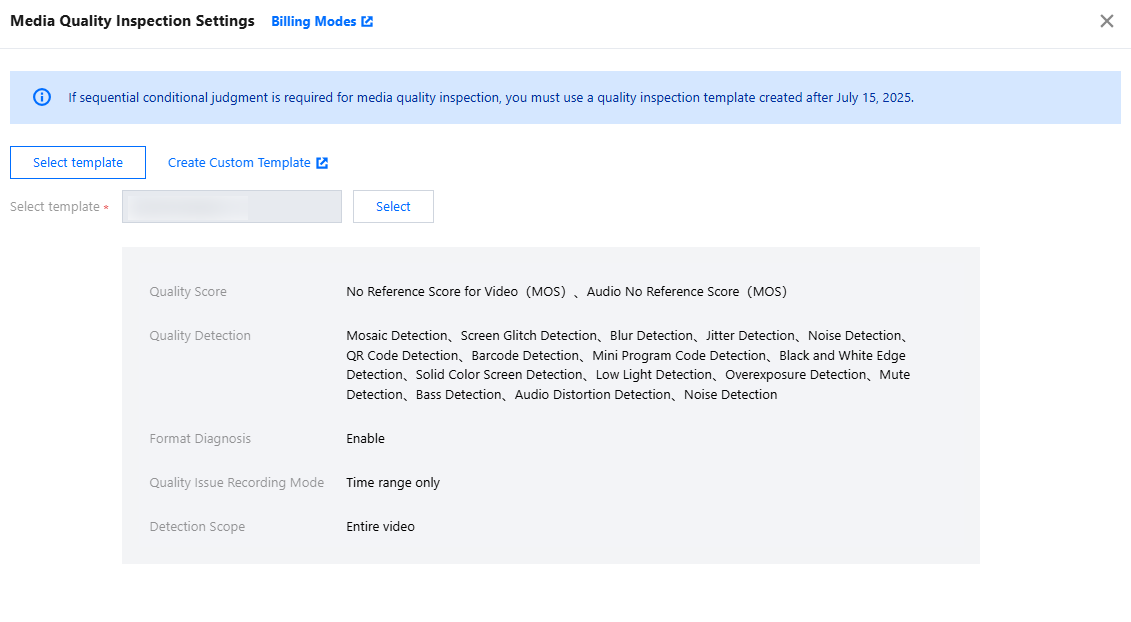 1. Log in to the MPS console, click Create Live Orchestration, and add the Media Quality Inspection node in the Actions field.