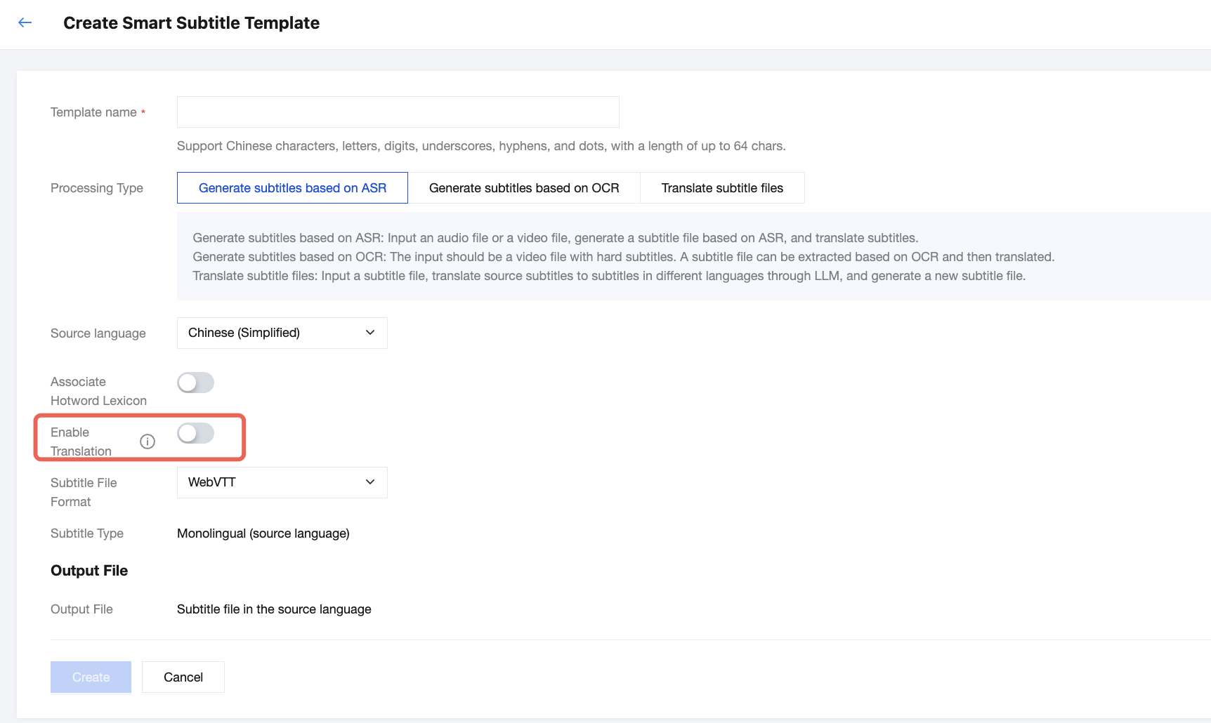If you set the processing type to "ASR-based subtitle generation" without enabling translation, ASR fees will be charged. For pricing details, see Billing Instructions.