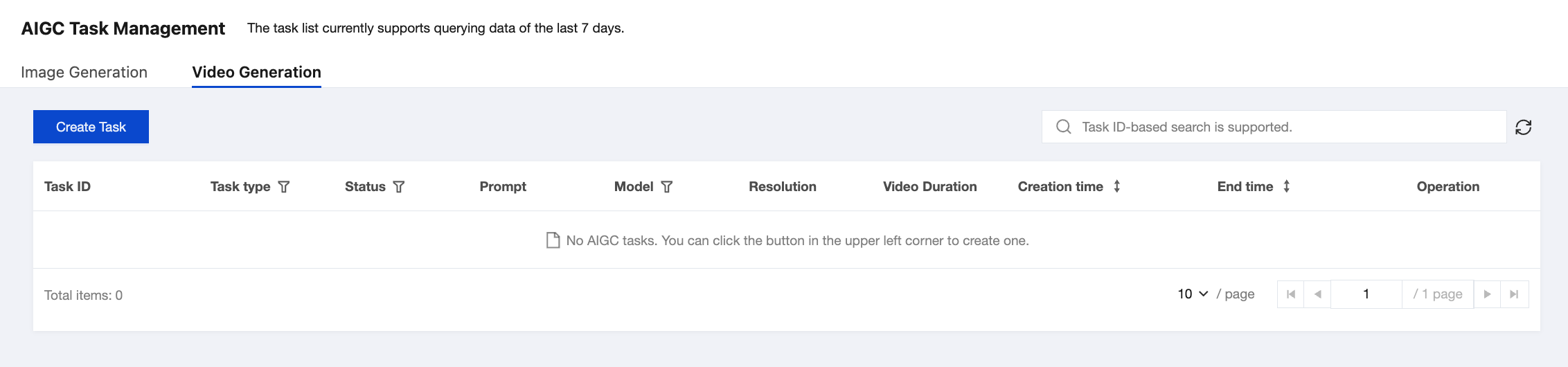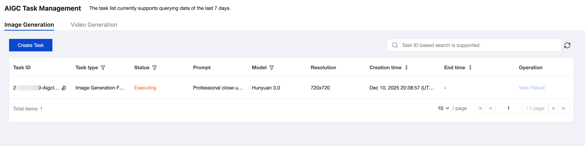 After you initiate an AIGC task through the console or through calling the API, the information about the task you initiate can be viewed and managed in AIGC Task Management.